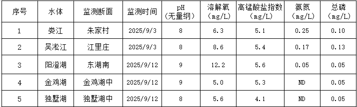 2025年9月蘇州工業(yè)園區(qū)地表水監(jiān)測結(jié)果