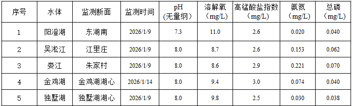 2026年1月蘇州工業園區地表水監測結果