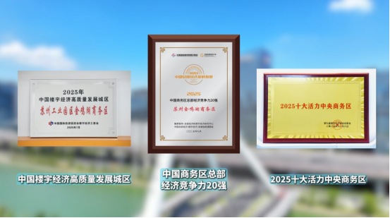 此次獲獎充分彰顯了商務區在樓宇經濟領域的活力和影響力回望2025商務區的樓宇經濟發展交出了碩果累累的亮眼答卷2025年中國樓宇經濟高質量發展大會上,商務區榮獲“中國樓宇經濟高質量發展城區”稱號,成為蘇州唯一獲此殊榮的區域;在2025年全球總部經濟大會上,商務區榮登“中國商務區總部經濟競爭力20強”全國榜單;在2025年蘇州市樓宇經濟政策獎勵評選中,商務區共9幢樓宇上榜,數量占園區一半以上,分別獲評“綜合評價優秀樓宇”“專業特色樓宇”以及“招商運營成績突出樓宇”。