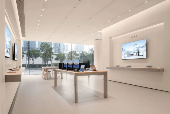 門店內科學劃分為產品展示區、解決方案演示區、客戶洽談區及專屬權益服務區等多個功能空間。產品展示區集中呈現臺式機、筆記本、平板電腦、打印機、顯示器、智能穿戴等華為擎云全系列商用終端產品;解決方案演示區則以真實業務場景為依托,展示華為擎云在智慧政務智慧教育智慧金融智慧能源智慧醫療五大領域的整體解決方案,全面助力政企客戶提升辦公效率與管理水平。
