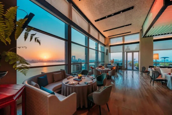 悅山府8號·CHAI8HOUSE(李公堤店),坐擁270度環金雞湖全景視野,在以二十四節氣命名的包廂和三樓露臺區域,都可將金雞湖的波光粼粼與城市天際線盡收眼底。