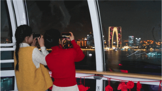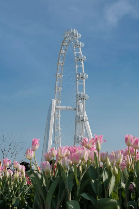 金雞湖音樂噴泉多日連映,沉浸式光影秀奏響新年序曲,帶給市民游客極致的視覺與聽覺享受;蘇州之眼摩天輪推出魚燈巡游、國潮電音派對、機器狗拜年等趣味互動,將科技元素注入傳統年味,傳統民樂與現代電音碰撞融合,打造潮流年味盛宴;金雞湖右岸飛翔雕塑下,郁金香層層疊疊盛放,紅的熱烈、粉的爛漫,隨手拍都是春日畫報。眾多市民游客積極參與金雞湖春節「潮」好拍小紅書環湖打卡活動,用鏡頭記錄金雞湖沿線地標的新春顏值。