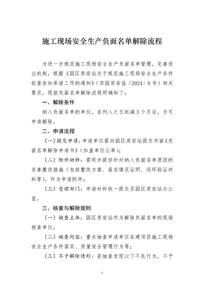 施工現場安全生產負面名單解除流程