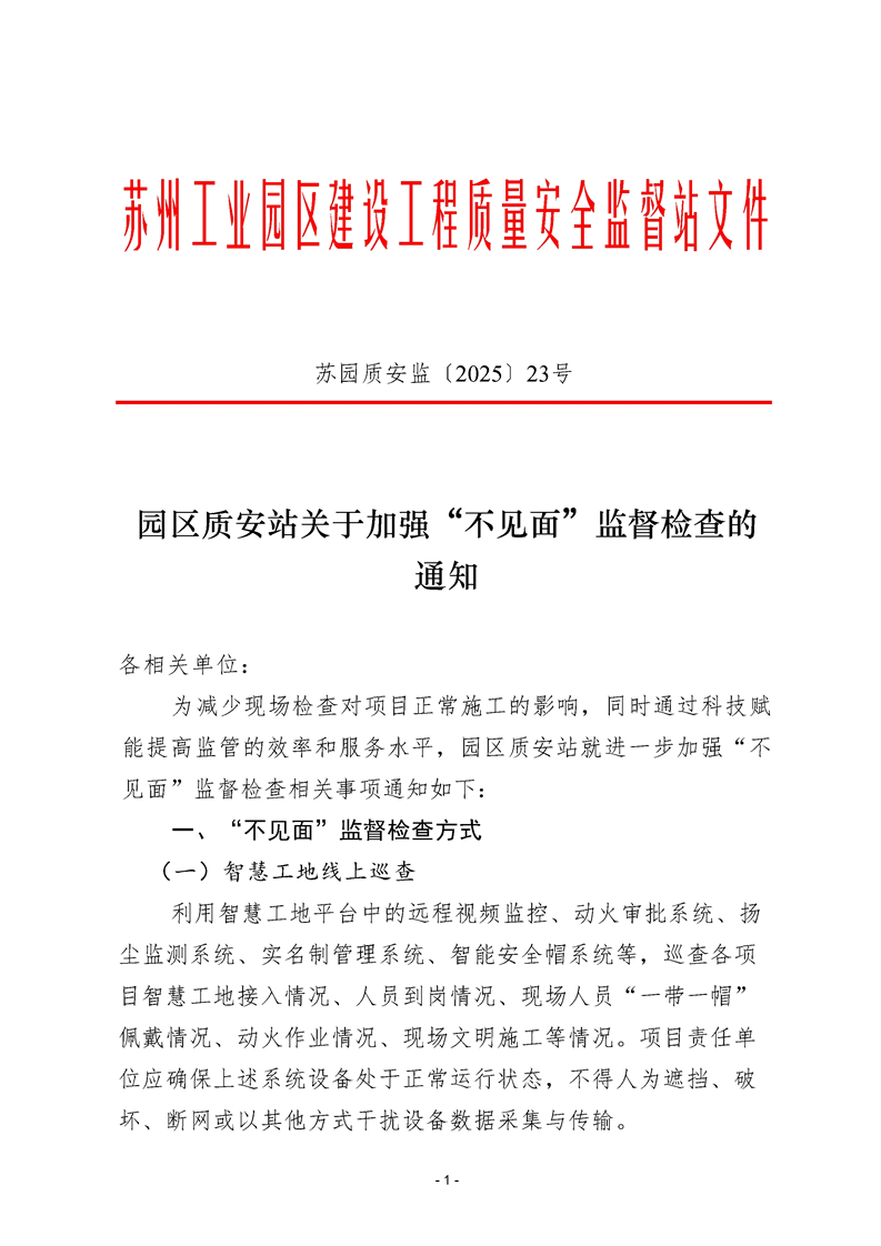 園區質安站關于加強“不見面”監督檢查的通知