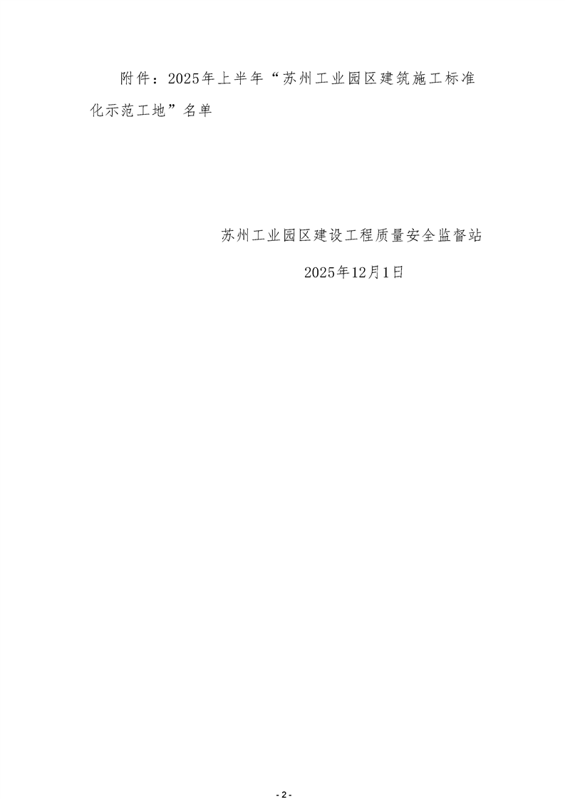 關(guān)于公布2025年“蘇州工業(yè)園區(qū)建筑施工標(biāo)準(zhǔn)化示范工地”名單的通知