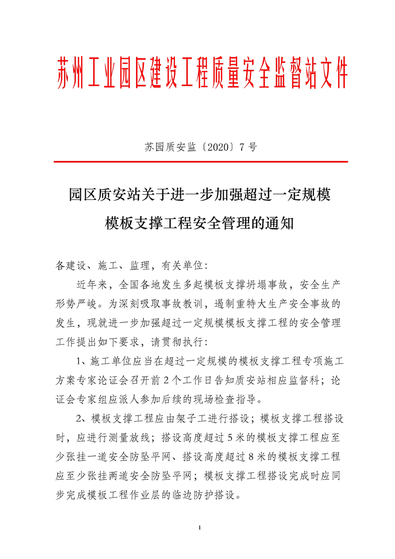 園區(qū)質(zhì)安站關(guān)于進(jìn)一步加強(qiáng)超過一定規(guī)模模板支撐工程安全管理的通知