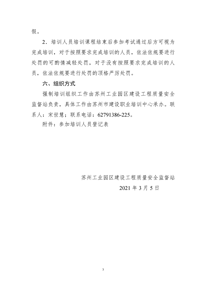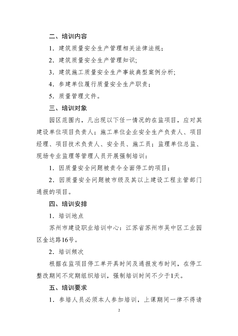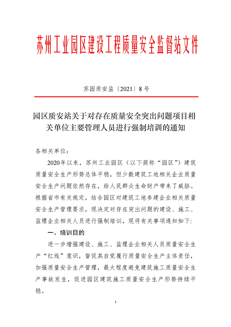 園區(qū)質安站關于對存在質量安全突出問題項目相關單位主要管理人員進行強制培訓的通知