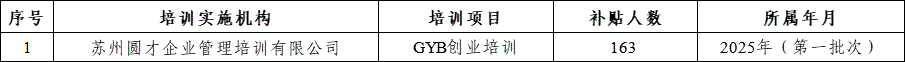 2025年創業培訓補貼公示名單(第一批次)
