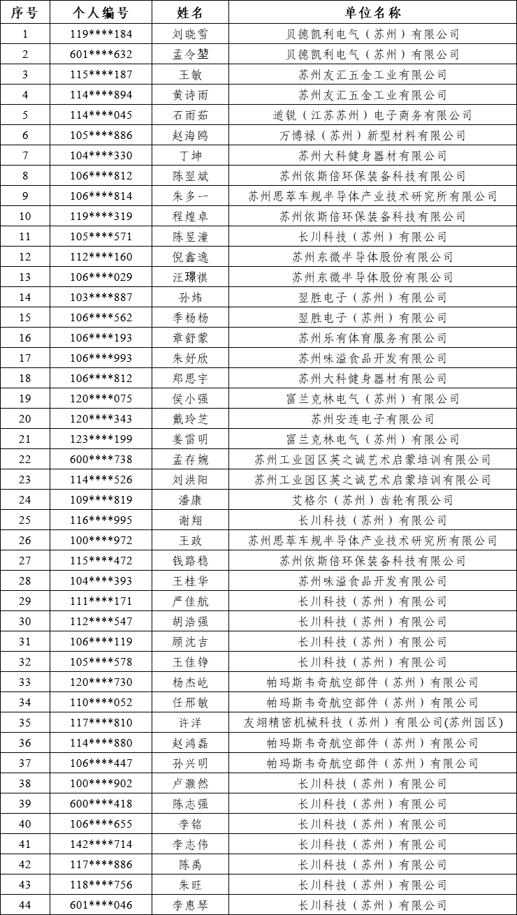 按照《省人力資源社會保障廳省財政廳關于加快落實擴大社會保險補貼范圍政策有關工作的通知》(蘇人社函〔2025238號)文件規定,擬對以下符合補貼條件人員進行公示,公示自發布之日起,期限為7天,如對以上公示內容有異議,請向園區就業管理服務中心反映。