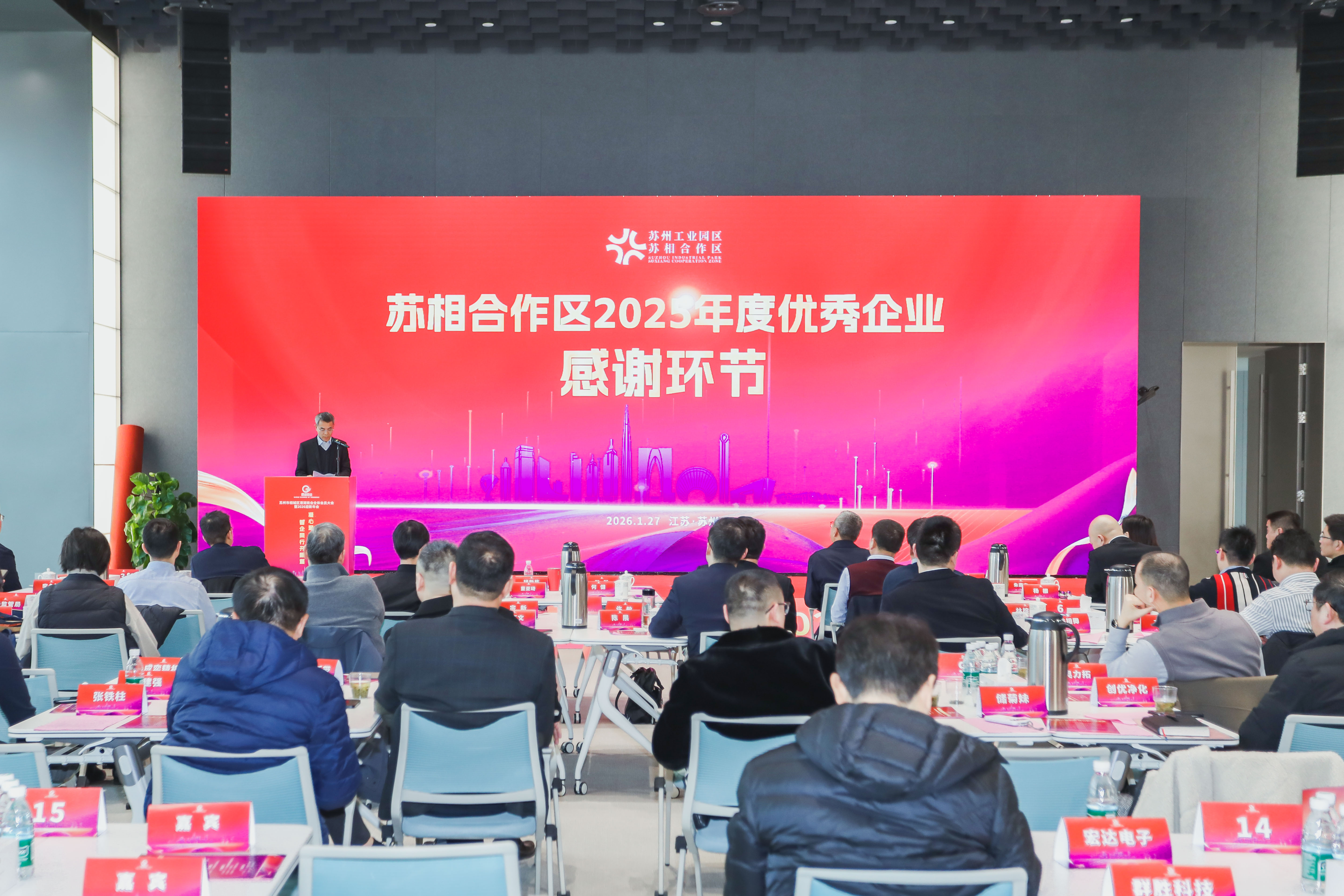 企業是推動蘇相合作區高質量發展的主力軍、中堅力量,更是合作區建設高端制造集聚區的核心動能。此次大會上,合作區對2025年度在經濟發展、同心共建、合作共贏、社會責任等領域表現突出、成效顯著的優秀企業進行集中致謝,福耀玻璃、美的清潔電器、易德龍、卡士酸奶等一批優秀企業代表上臺接受感謝狀。這份認可,是對企業實干篤行、勇于擔當的肯定與褒獎,也是政企同心、攜手并肩、共創未來的堅定承諾。