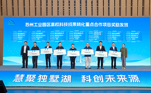 現場,鑫浦能碳大模型、可溶性微針等7個高校中從實驗室走向生產線的優秀項目,獲“蘇州工業園區高校科技成果轉化重點合作項目獎勵”。