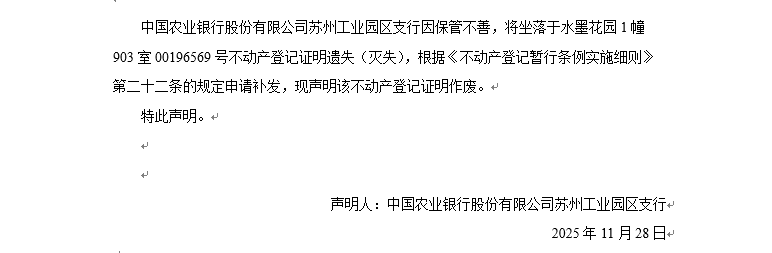 關于水墨花園1幢903室00196569號不動產(chǎn)登記證明遺失聲明