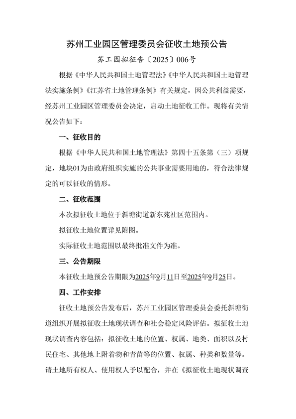 蘇工園擬征告〔2025〕006號--征收土地預(yù)公告