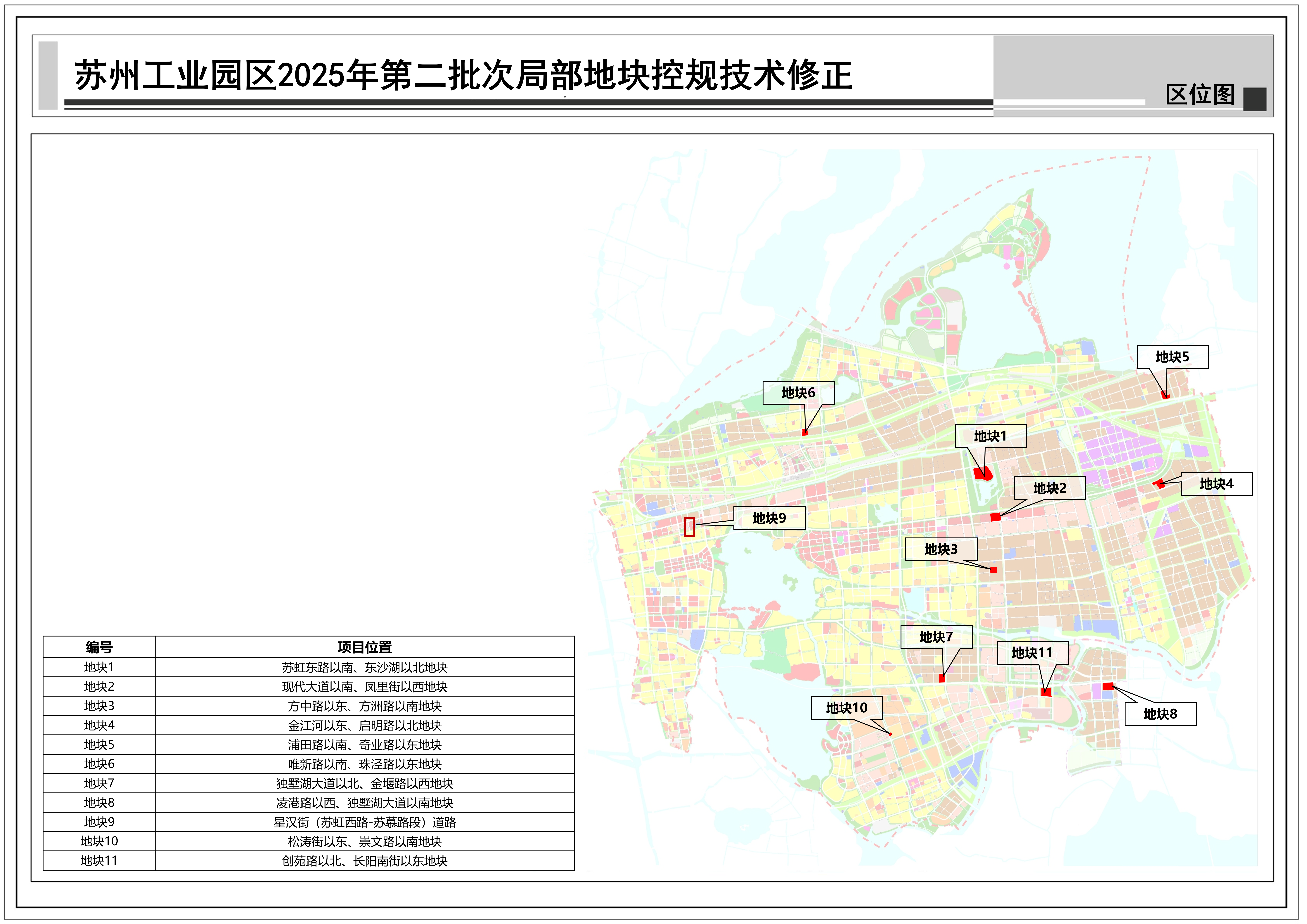 蘇州工業(yè)園區(qū)2025年第二批次局部地塊控規(guī)技術(shù)修正:共包括11個(gè)地塊,總用地面積約0.75平方公里,詳見附圖區(qū)位圖。