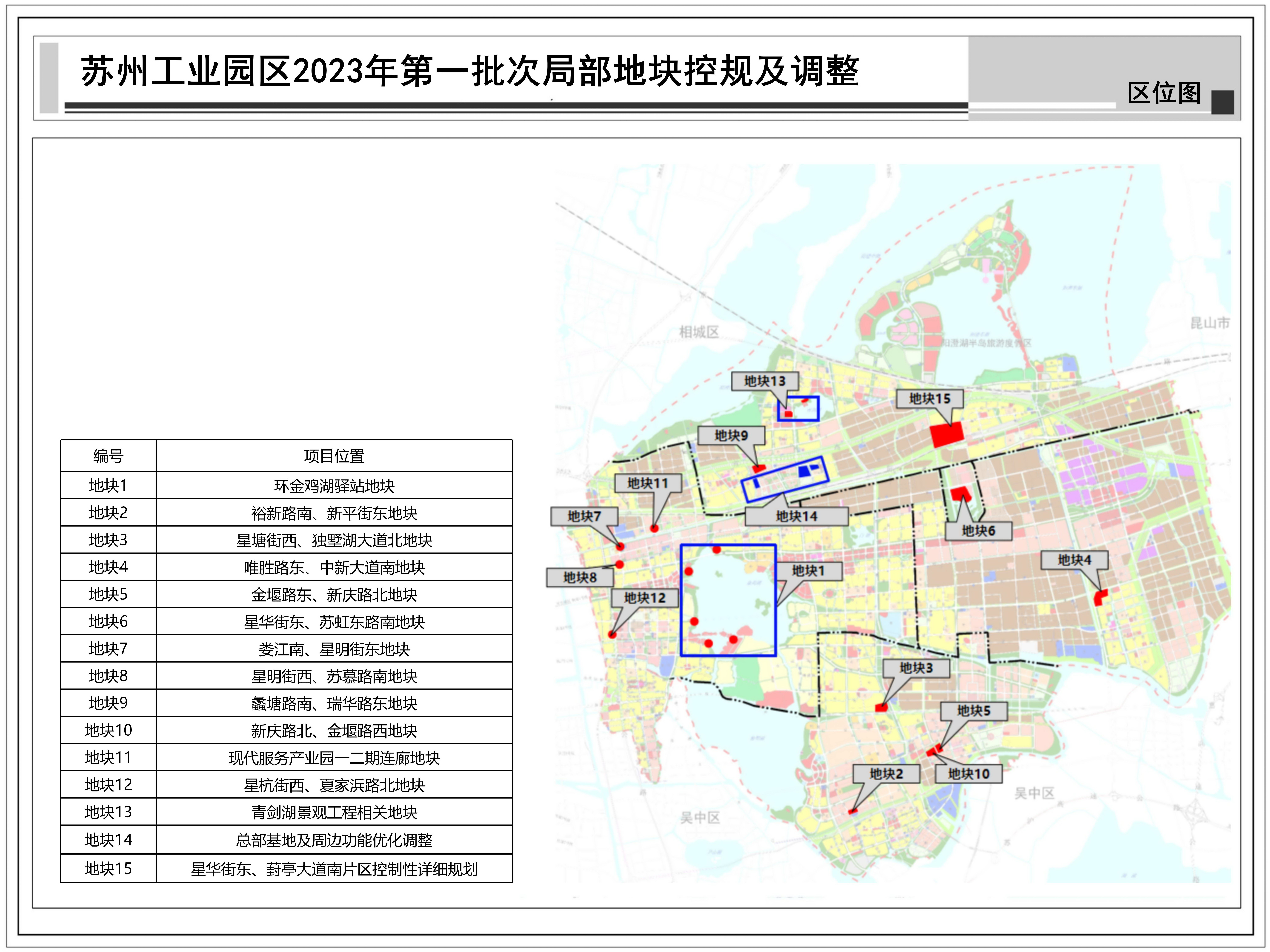 蘇州工業(yè)園區(qū)2023年第一批次局部地塊控規(guī)及調(diào)整:共包括15個(gè)地塊,總用地面積約1.38平方公里,詳見附圖區(qū)位圖。
