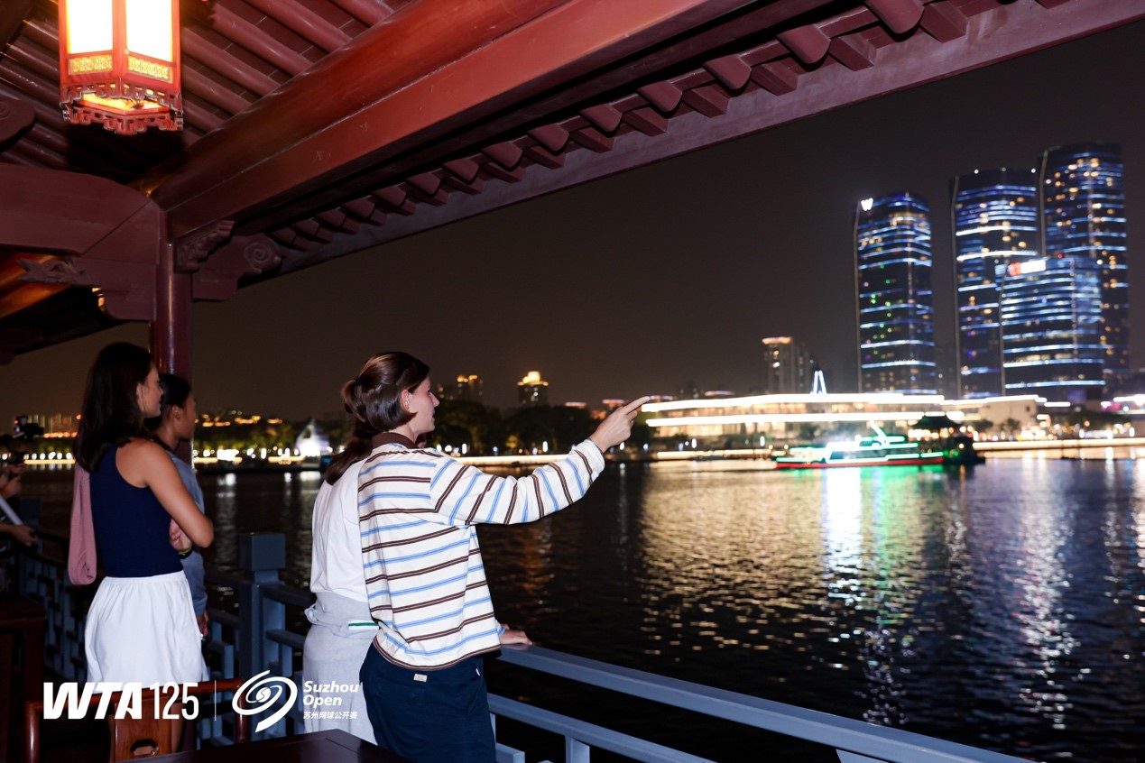 2025年9月27日、WTA125蘇州テニスオープンが開(kāi)幕した。試合終了後の午後7時(shí)、世界各國(guó)から參加した選手たちは金鶏湖にある月光埠頭に到著し、遊覧船に乗り込んで昆曲の蕓術(shù)を鑑賞し、音楽噴水を楽しんだ。