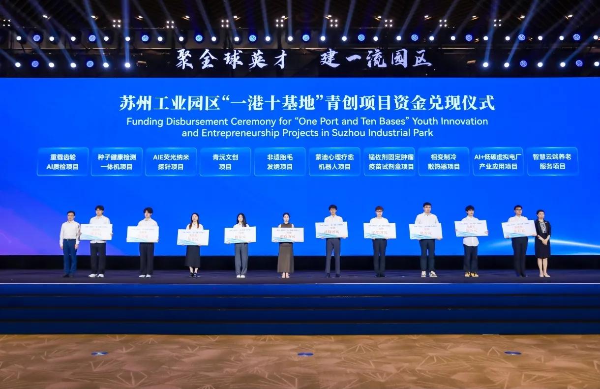 青年是城市發(fā)展的活力源泉。今年3月,園區(qū)發(fā)布“園夢(mèng)未來”青年人才創(chuàng)新創(chuàng)業(yè)三年行動(dòng)計(jì)劃,打造“一港十基地”青創(chuàng)空間,新設(shè)1億元青創(chuàng)資金專項(xiàng)用于遴選青年人才項(xiàng)目。新政實(shí)施以來,累計(jì)舉辦56場(chǎng)青創(chuàng)活動(dòng),改造4個(gè)人才社區(qū),發(fā)放415張人才房票,補(bǔ)貼金額超5300萬元,引進(jìn)青年人才超4萬。開幕式上,園區(qū)“一港十基地”青創(chuàng)項(xiàng)目資金正式兌現(xiàn),為“一港十基地”項(xiàng)目路演一二三等獎(jiǎng)及優(yōu)勝獎(jiǎng)等10個(gè)獲獎(jiǎng)項(xiàng)目兌現(xiàn)青創(chuàng)資金。
