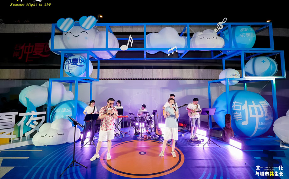 星光為幕,湖水為弦,金雞湖的浪漫在光影與人文的交織中熠熠生輝。流行樂團(tuán)“佩琦和朋友們”這支由園區(qū)青年組成的樂團(tuán),也用他們的青春張揚(yáng),展現(xiàn)了時(shí)尚園區(qū)的活力本色。