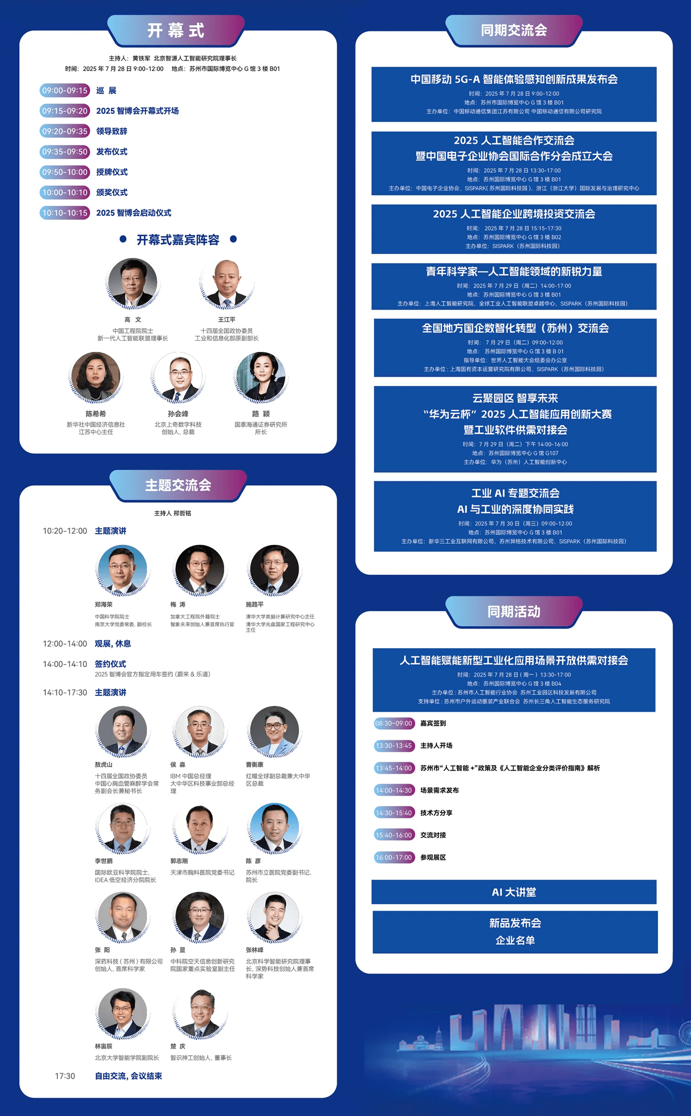 7月28日,2025人工智能產(chǎn)品應(yīng)用博覽會在蘇州工業(yè)園區(qū)開幕。工業(yè)和信息化部原副部長王江平,中國工程院院士、新一代人工智能聯(lián)盟理事長高文,市委副書記、市長吳慶文出席活動。高文在致辭時表示,堅信智博會將持續(xù)發(fā)揮全球AI產(chǎn)業(yè)協(xié)同創(chuàng)新的重要樞紐作用,推動構(gòu)建開放、包容、普惠的人工智能發(fā)展生態(tài)。希望與全球合作伙伴一道,深化技術(shù)交流、促進(jìn)產(chǎn)業(yè)融合、共商倫理治理,攜手推動人工智能技術(shù)安全、可靠、可控地向前發(fā)展,惠及人類社會。吳慶文說,期待以本次大會為契機(jī),充分展示蘇州發(fā)展人工智能的豐碩成果、堅定決心、務(wù)實(shí)行動和美好愿景,吸引集聚更多硬核科技、創(chuàng)新企業(yè)、精英人才、優(yōu)質(zhì)資本選擇蘇州、落戶蘇州、扎根蘇... [詳細(xì)]