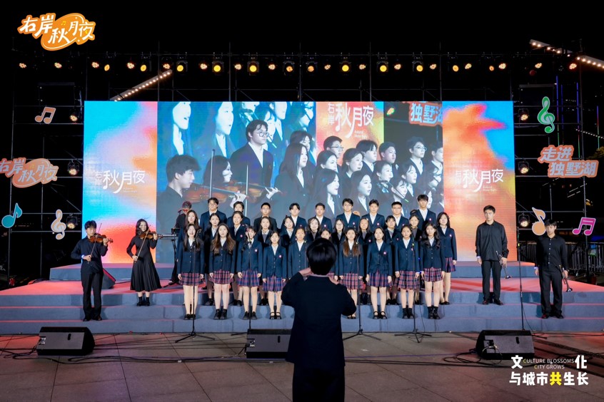 獨墅湖科教創(chuàng)新區(qū)的校園力量更是成為當(dāng)晚的亮眼風(fēng)景。西交利物浦大學(xué)藝術(shù)協(xié)會合唱團(tuán)、中國人民大學(xué)蘇州校區(qū)合唱團(tuán)以專業(yè)合唱藝術(shù)為橋梁,連接不同文化背景的聽眾,不僅展現(xiàn)了科創(chuàng)區(qū)學(xué)子的青春風(fēng)貌,更成為校園文化與城市活動深度融合的鮮活注腳,為區(qū)域文化活力持續(xù)加碼。