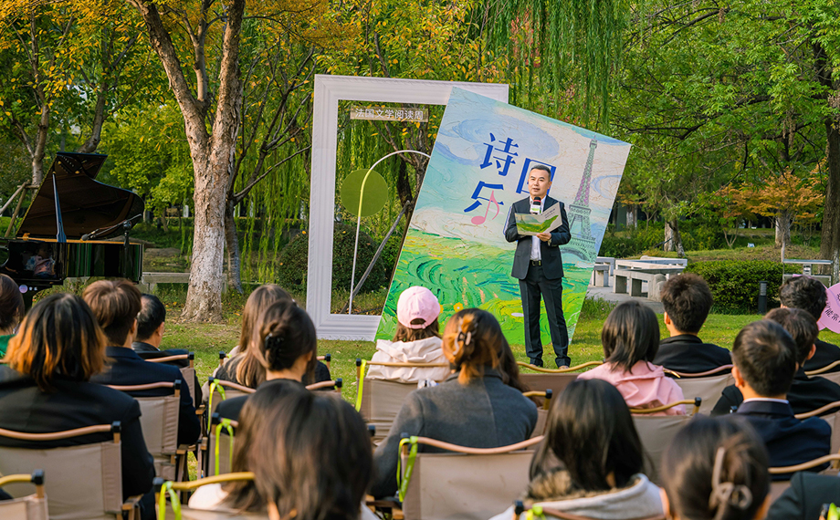 此外還有“詩樂回響”湖畔朗誦會(huì)在獨(dú)墅湖畔戶外草坪溫情上演。高校師生、文學(xué)愛好者齊聚于此,誦讀雨果、拉封丹等法國(guó)文豪的經(jīng)典篇章,搭配《浪漫曲》《梁祝》等中法名曲,鋼琴與圓號(hào)的旋律縈繞湖畔,讓文字與音符跨越語言壁壘,在波光粼粼的湖岸線旁,奏響中法藝術(shù)共鳴的動(dòng)人樂章。