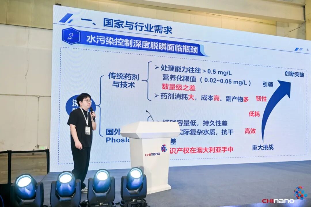 蘇州拓?fù)浞肿涌萍加邢薰狙邪l(fā)經(jīng)理張濤,介紹了《基于納?互鎖捕磷劑的新型材料、裝備與技術(shù)保障體系的建立》。該公司科研團隊經(jīng)過對金屬中心的對離子不斷地調(diào)控,發(fā)展了以碳酸根為對離子的新型吸附活性位點,并利用結(jié)構(gòu)相似性提高磷吸附自發(fā)性、交換配位可逆性和pH適用范圍,降低磷吸附與脫附的活化能壘,拓展了磷吸附劑的實用韌性,并突破了傳統(tǒng)認(rèn)知。