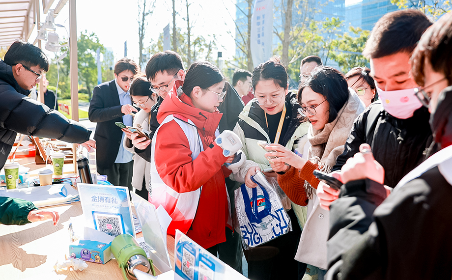 11月19日至20日,第七屆中新(蘇州)數(shù)字金融應(yīng)用博覽會、2025金融科技大會在蘇州國際數(shù)據(jù)港召開。一場融合傳統(tǒng)韻味與數(shù)字活力的金博會數(shù)字金融市集同步熱鬧開市。市集以非遺手作、蘇式美食、數(shù)字潮玩等吸引大批市民駐足。在“數(shù)字金雞湖”平臺的全流程支持下,將金融科技的便捷融入逛展點滴。