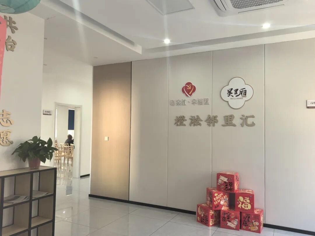 改造前,吳淞新村東、西區活動室空間狹小,設施陳舊,往往只能開展簡單的休閑活動,難以滿足全年齡段居民日益多樣化的生活與精神需求。本次改造以“適老化、人性化、全齡化”為核心東、西兩區因地制宜、功能互補。改造后,東區活動室蝶變為綜合服務載體——“吳里廂·橙淞鄰里匯”,設有便民理發室、專業按摩室、適老化助浴間、寬敞活動大廳與溫馨心理咨詢室五大功能區,全方位覆蓋老人的生活照料、健康康養與休閑社交等需求,同時也為全年齡段居民提供便利服務。在整體煥新的基礎上,西區活動室著力打造為文明實踐活動專屬區域,完善休閑設施,成為居民思想引領、文化滋養、志愿互動的新平臺。