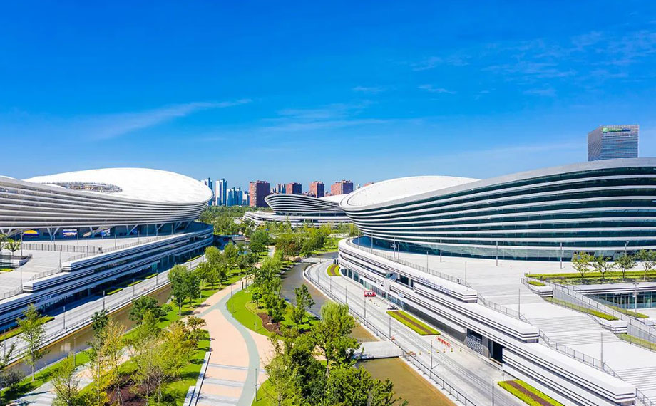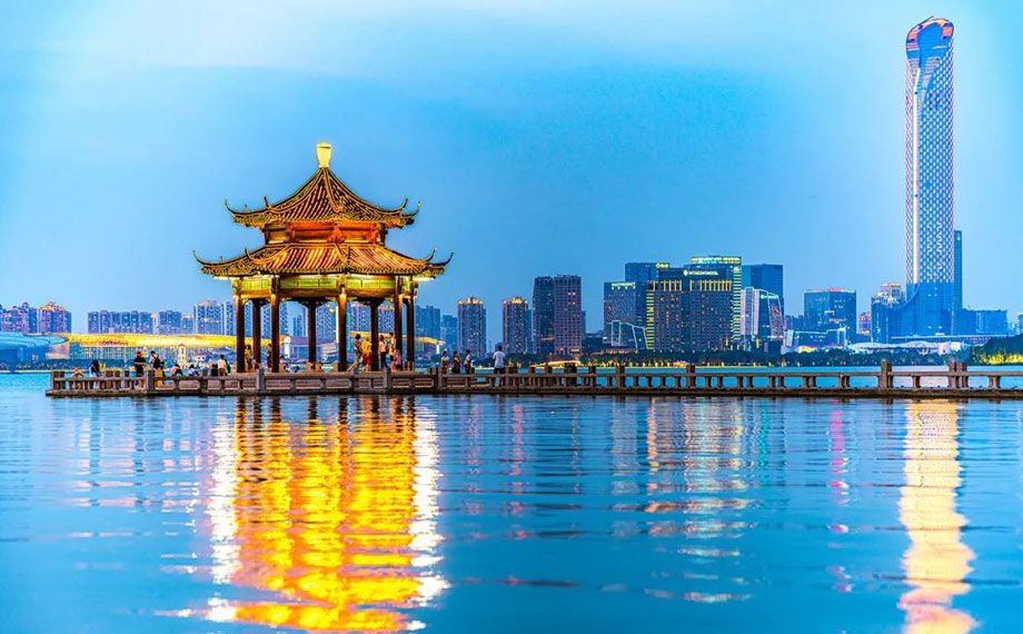 從東環路轉金雞湖大道,再向北進入星港街,園區的現代繁華撲面而來。金雞湖天虹、蘇悅廣場、星悅匯、蘇州中心商場等商貿載體集聚湖西。其中,星悅匯是二次元愛好者的天堂,蘇州中心商場更是市民游客不可錯過的城市打卡地之一。