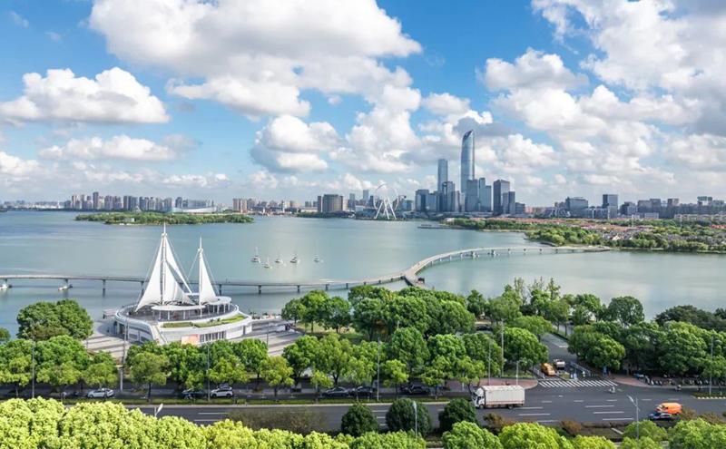沿著賽道,金雞湖這顆城市明珠熠熠生輝。這里不僅有蘇州文化藝術中心、誠品生活蘇州等文化地標,還有飛翔雕塑、環湖驛站等新晉網紅,更能一探“蘇州之眼”、蘇州當代美術館的芳容。