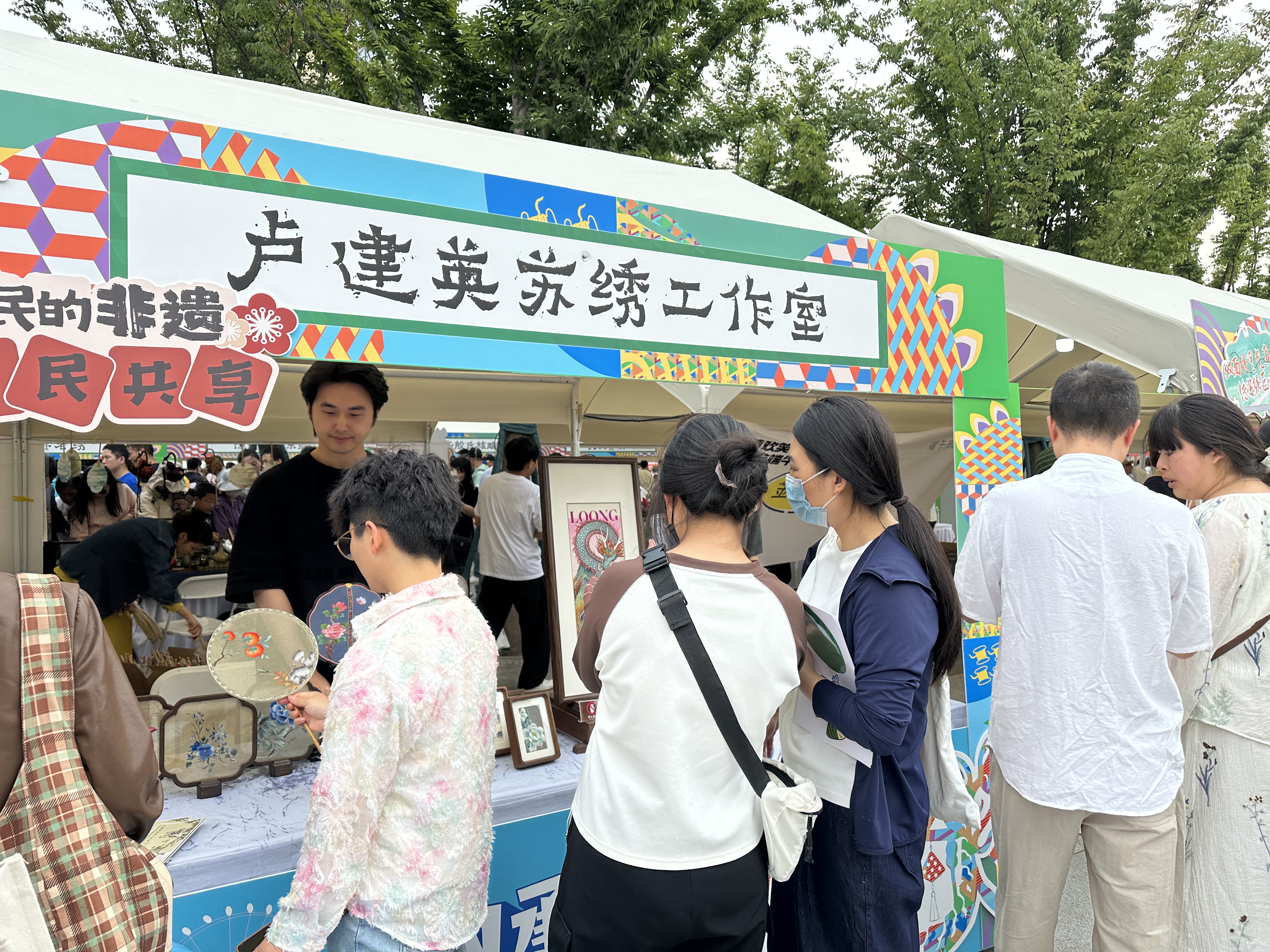 在文化傳承的舞臺上,高校力量與非遺新生代的雙向賦能成為一道亮麗的風景線。在中國人民大學蘇州校區的攤位前,長隊如龍。該校澄懷國學社的同學們精心準備了投壺、飛花令、香囊制作等中國傳統民俗非遺限定體驗活動。蔣同學熱情地引導游客參與游戲,他介紹道:“我們希望把豐富多彩的中國傳統文化帶到市集上,讓更多人感受傳統文化的魅力。作為高校青年,我們有責任、有義務在文化傳播中勇當先鋒,讓傳統文化在新時代綻放新光彩。”隔壁攤位的園區服務外包學院則充分發揮數字技術優勢,打造“科技+文化”雙引擎傳承模式;蘇州工藝美院青年學子帶來螺鈿鑲嵌、巖彩壁畫等精湛技藝,并推出“可帶走的蘇式美學”文創產品。一系列充滿創意的展示,展現出“00后”眼中別具一格的傳承新范式。