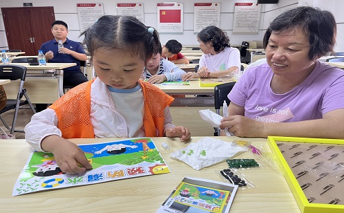 在活動室內,孩子們專注地將五彩斑斕的紐扣粘貼在畫板上,拼貼出救生圈、安全警示牌等防溺水主題圖案。每一粒紐扣的鑲嵌,都是安全知識在指尖的傳遞與深化。畫作完成后,孩子們紛紛走上小講臺,自信滿滿地分享自己精心準備的防溺水小故事。稚嫩而認真的童聲講述著河湖暗藏的危險與自救互救的智慧,讓“珍愛生命,謹防溺水”的警鐘在每一位參與者心中清晰回響。