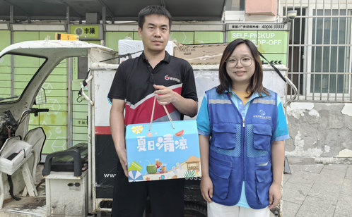 炎炎夏日,驕陽似火,新業(yè)態(tài)從業(yè)者們依舊穿梭在大街小巷,為居民生活帶來便利。為了傳遞對新業(yè)態(tài)從業(yè)人群的關愛,表達對他們的敬意,淞潭社區(qū)暖心開啟“夏日送清涼”騎士節(jié)愛心活動,貼心籌備了包含生活用品、避暑產(chǎn)品等物品的夏日清涼禮包。活動現(xiàn)場,熱浪襲人,社區(qū)專職網(wǎng)格員為正在轄區(qū)內(nèi)奔波忙碌的新就業(yè)群體送上滿含心意的清涼禮包。“天熱千萬注意防暑!”暖心的話語伴隨著沉甸甸的禮包一一送到外賣騎手、快遞員等新業(yè)態(tài)人群手中。這份“清涼”不僅驅(qū)散了夏日的燥熱,更讓他們在忙碌的工作中感受到社區(qū)的關懷與敬意,讓奔波的路上多了一份溫暖與動力。
