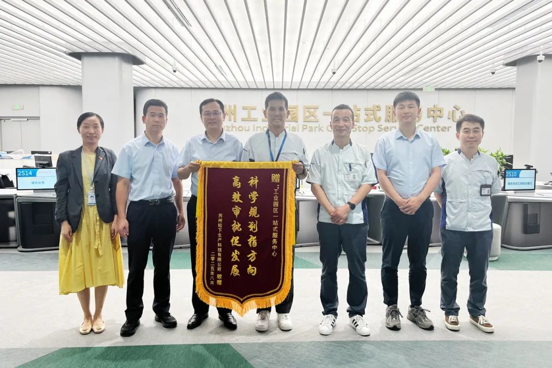 蘇州松下生產科技有限公司負責人親自送來錦旗,衷心感謝園區行政審批局及一站式服務中心在新項目建設竣工階段的高效服務,保障了8月6日前實現竣工備案及“竣工即投產”目標,比企業的預期時間提前了將近一周。
