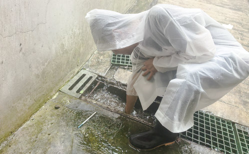 高層地下車庫也是此次巡查的重點區域。巡查小隊對抽水泵、排水口等防汛關鍵設施進行了全面細致的檢查,逐一確認設備是否正常運行。當巡查人員發現車庫排水槽出現滿溢現象時,他們毫不猶豫地直接上手,迅速清理出落葉等垃圾,及時解決排水不暢的問題,避免了積水可能帶來的安全隱患。