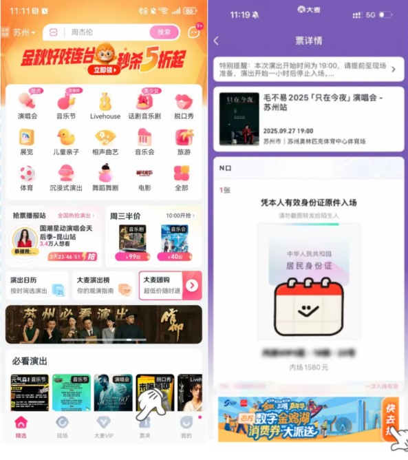 消費者在大麥購買的蘇州大市范圍內(nèi)的演藝、賽事門票,可在大麥APP門票頁面點擊“金秋·三湖嘉年華”活動頁兌換園區(qū)超值福利禮包,覆蓋蘇州中心、圓融時代廣場、李公堤、斜塘老街、月光碼頭等商圈,以及農(nóng)樂園、江邊城外、金海華、享德來、月牙彎、7分甜等餐飲品牌,實現(xiàn)觀演與消費的雙重體驗,也讓看一場演出、品城市煙火,成為這個金秋最鮮活的注腳。
