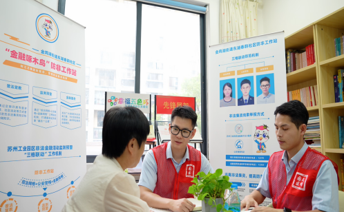 街道與轄區(qū)金融機(jī)構(gòu)深度共建,以防非工作站建設(shè)為基點(diǎn)持續(xù)擴(kuò)大防非工作的“體量”與“聲量”。去年,街道以玲瓏灣社區(qū)為試點(diǎn),攜手南京銀行成功打造了園區(qū)首批防非工作站。今年再度發(fā)力,與常熟農(nóng)商銀行、江蘇銀行、蘇州銀行三家單位建立深度合作關(guān)系,增設(shè)以東湖春韻社區(qū)、新未來(lái)社區(qū)、榮域社區(qū)為代表的第二批9個(gè)防非工作站,兼具“防”與“服”兩項(xiàng)核心功能,推動(dòng)優(yōu)質(zhì)金融服務(wù)不斷拓圈,真正“沉”到社區(qū)、“匯”入萬(wàn)家。