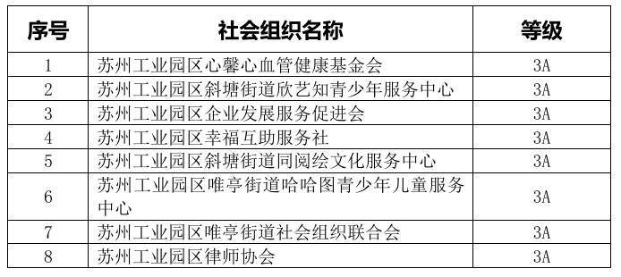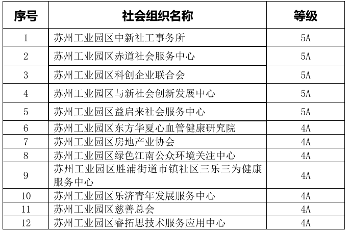 根據《蘇州市社會組織評估管理辦法》和《園區社會事業局關于開展2025年社會組織等級評估工作的通知》(蘇園社〔2025〕11號)的要求,社會事業局于2025年7月—2025年11月實施園區社會組織等級評估工作。根據社會組織歷年年檢情況、社會組織雙隨機檢查和定期檢查等結果,并結合社會組織申報自評和專家組考評審定意見,現將2025年度社會組織等級評估結果公示如下: