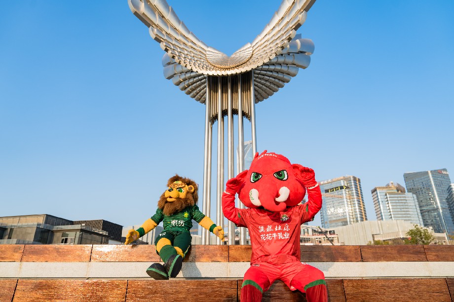 腳踏足球,北京國安的吉祥物“京獅”朝氣蓬勃,身上的12號球衣,將球隊與球迷緊緊相連。河南俱樂部的吉祥物“巴布”則以大象的形象和紅色主色調,彰顯無畏、自信、堅韌、拼搏的精神內核。它們萌趣活力的形象在金雞湖畔留下這個秋末初冬的一份獨特記憶。