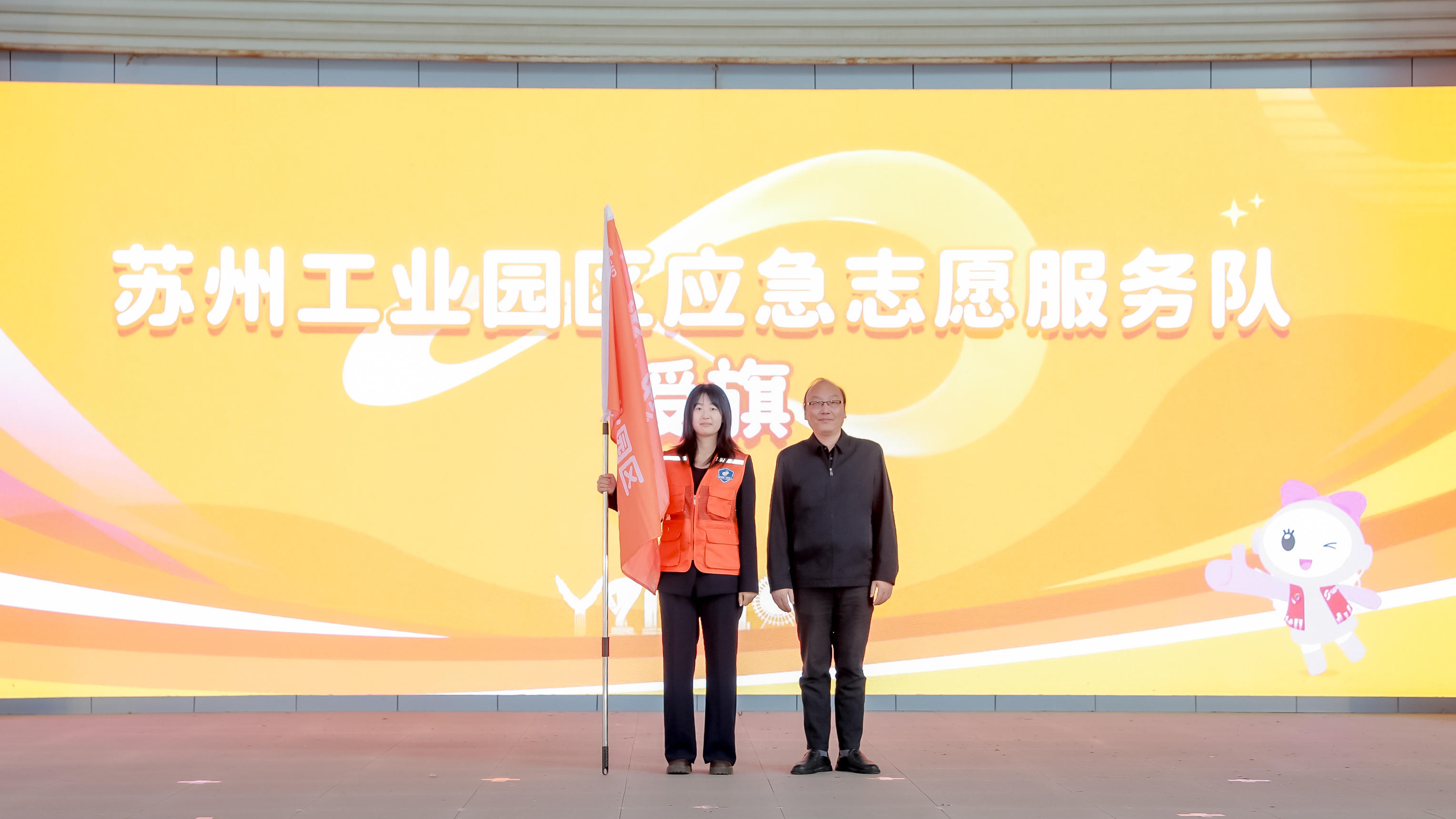 提升區域綜合應急能力是基層治理的重要課題,活動中,園區志愿服務隊正式授旗成立,標志著園區應急志愿服務工作邁入規范化、專業化發展新階段,為城市安全筑起一道堅固防線。活動現場還回顧了首屆園區新時代志愿服務項目大賽歷程,大賽通過180天全周期培育,孵化出一批聚焦社會痛點的優質項目。冠軍項目“星悟空”團隊進行閃電路演,分享孤獨癥全齡段數字康復技術與社會融合支持計劃,展示了志愿服務在助殘領域的專業探索與人文溫度。