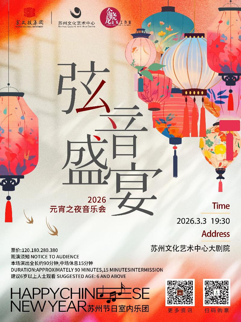 元宵節(jié),蘇州著名小提琴藝術(shù)家金曉龍與他的朋友們將來到蘇州文化藝術(shù)中心大劇院,為觀眾帶來精彩的弦樂演奏,演出曲目涵蓋了多位大師的浪漫曲,邀您一起共度弦音盛宴2026元宵之夜音樂會。