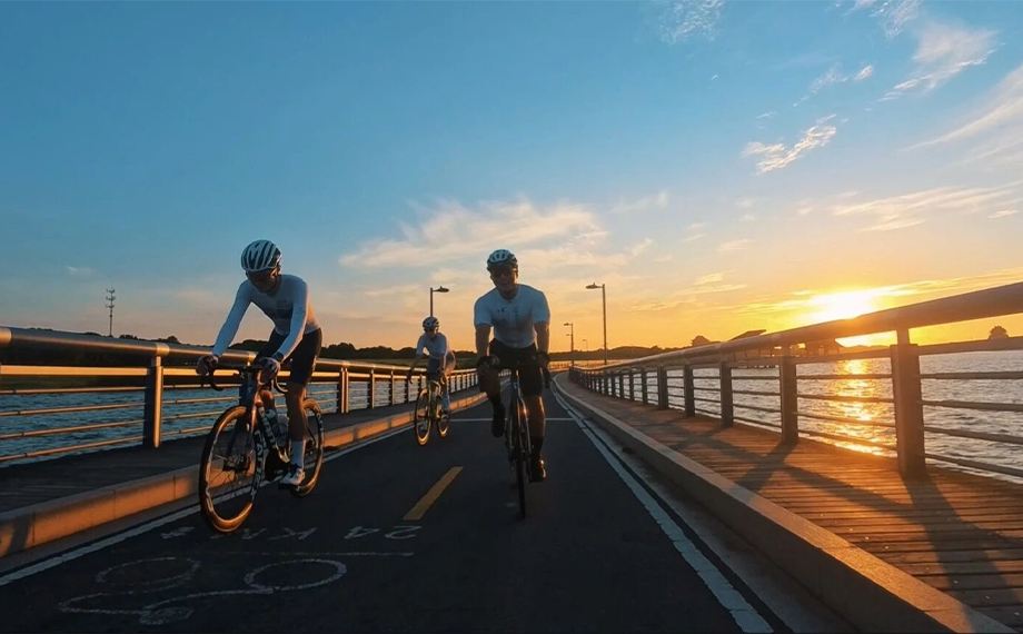 清晨,晨光為陽澄湖半島的湖水緩緩鍍上金邊,騎行者在這里破風前行,行人在這里沿湖漫步、靜吸朝暉,每個人在這片光暈中都能尋找到屬于自己的運動節奏。