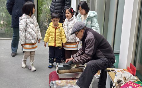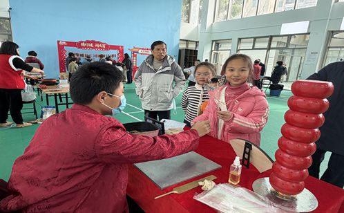 糖畫攤前最熱鬧,手藝人舀起糖稀,手腕輕轉間便畫出飛鳥走獸,孩子們舉著糖畫舍不得下口。糖葫蘆和棉花糖攤位也沒閑著,紅彤彤山楂裹上糖衣,棉花糖機嗡嗡作響,空氣里彌漫著焦糖甜香。這些承載童年記憶的傳統小吃,讓年味在舌尖延續,也為即將開啟的志愿服務月增添了溫馨底色。