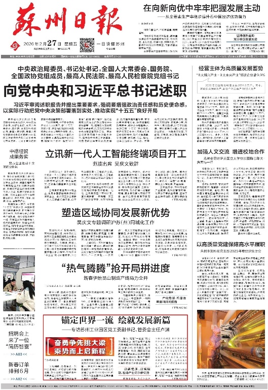 《蘇州日?qǐng)?bào)》2026年02月27日A01版