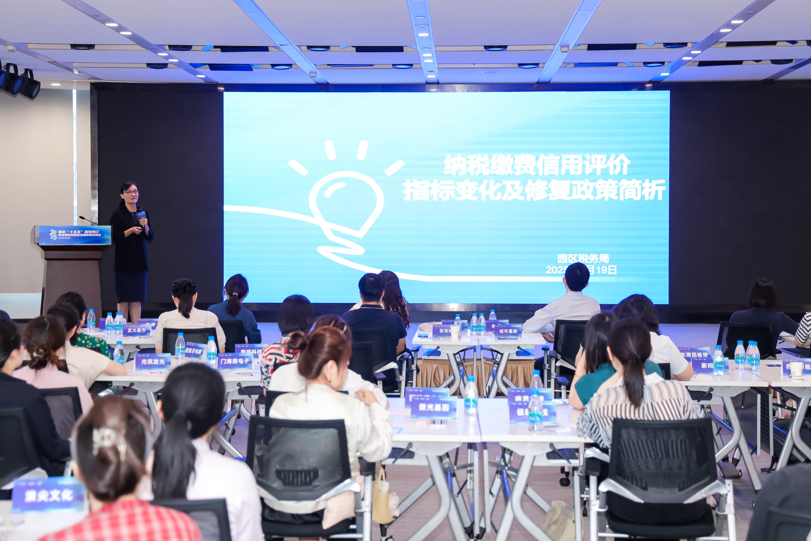 活動伊始,國家稅務總局園區稅務局納稅服務科負責人就納稅信用最新政策向參會企業代表進行了解讀。通過梳理分析企業常見的納稅信用最新政策、稅收改革趨勢等內容,幫助企業健康發展,進一步優化稅收營商環境。
