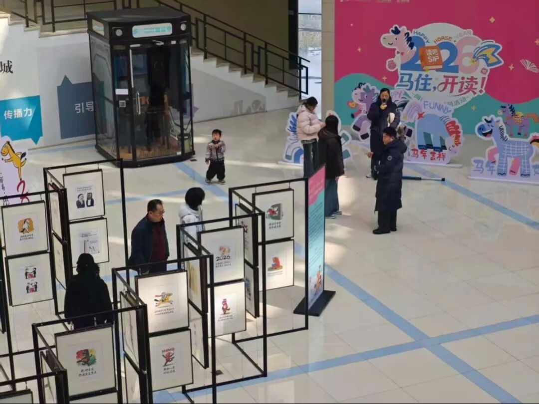 此外,蘇州知名漫畫(huà)家阿濤老師還為丙午新春獻(xiàn)上了一份特別賀禮。走進(jìn)圖書(shū)館一樓大廳,百幅圍繞生肖“馬”創(chuàng)作的幽默漫畫(huà),或諧音雙關(guān),或妙解成語(yǔ),將生活的智慧融于方寸之間,讓讀者們仿佛踏入了一個(gè)充滿(mǎn)巧思與歡笑的“精神牧場(chǎng)”。