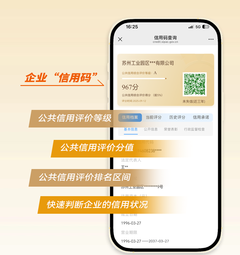 整合多維度信用數據,創新推出“企業信用碼”,以不同顏色二維碼區分企業信用審查結果,實現企業信用狀況快速識別;建立公共信用綜合評價體系,對經營主體信用狀況進行評分并定期更新,直觀展示企業公共信用評價情況;匯聚不同行業領域的監管數據,助力實施分級分類信用監管及跨部門聯合監管,為構建以信用為基礎的新型智慧化監管服務體系提供重要支撐。