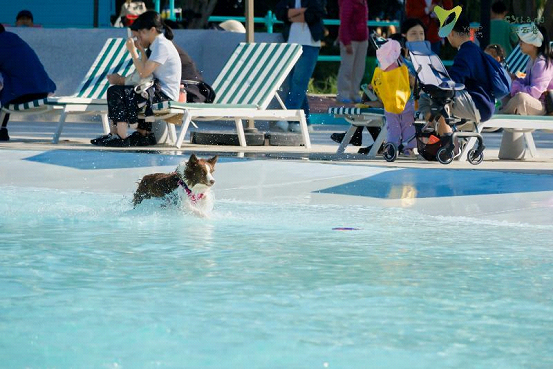 In addition to running a pet-friendly café at the entrance of Chongyun Lane, omitofee has set up in the area a 1,500-square-meter playground with a fully automatic ceiling system and an 800-square-meter swimming pool for pets, and a special park for small dogs.