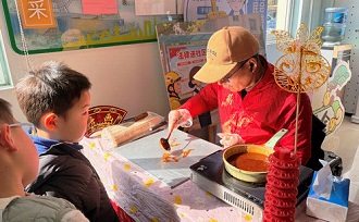 In the event, a sugar painting expert demonstrated the traditional craft of using a spoon and melted sugar to draw pictures. With swift movements, golden syrup was shaped into vivid zodiac animals and flowers, attracting crowds with its sweet aroma. Many children waited at the booth to taste the delicate creations.