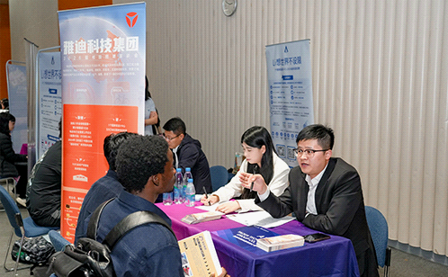 A job fair was held at Xi’an Jiaotong-Liverpool University (XJTLU) in SIP’s Suzhou Dushu Lake Sci-Edu Innovation District on Nov 5, when over 50 employers offered more than 800 job and internship opportunities to foreign students from schools in the district.